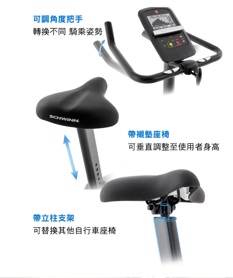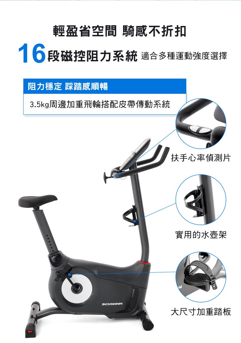 扶手心率偵測片、水壺架、大尺寸加重踏板