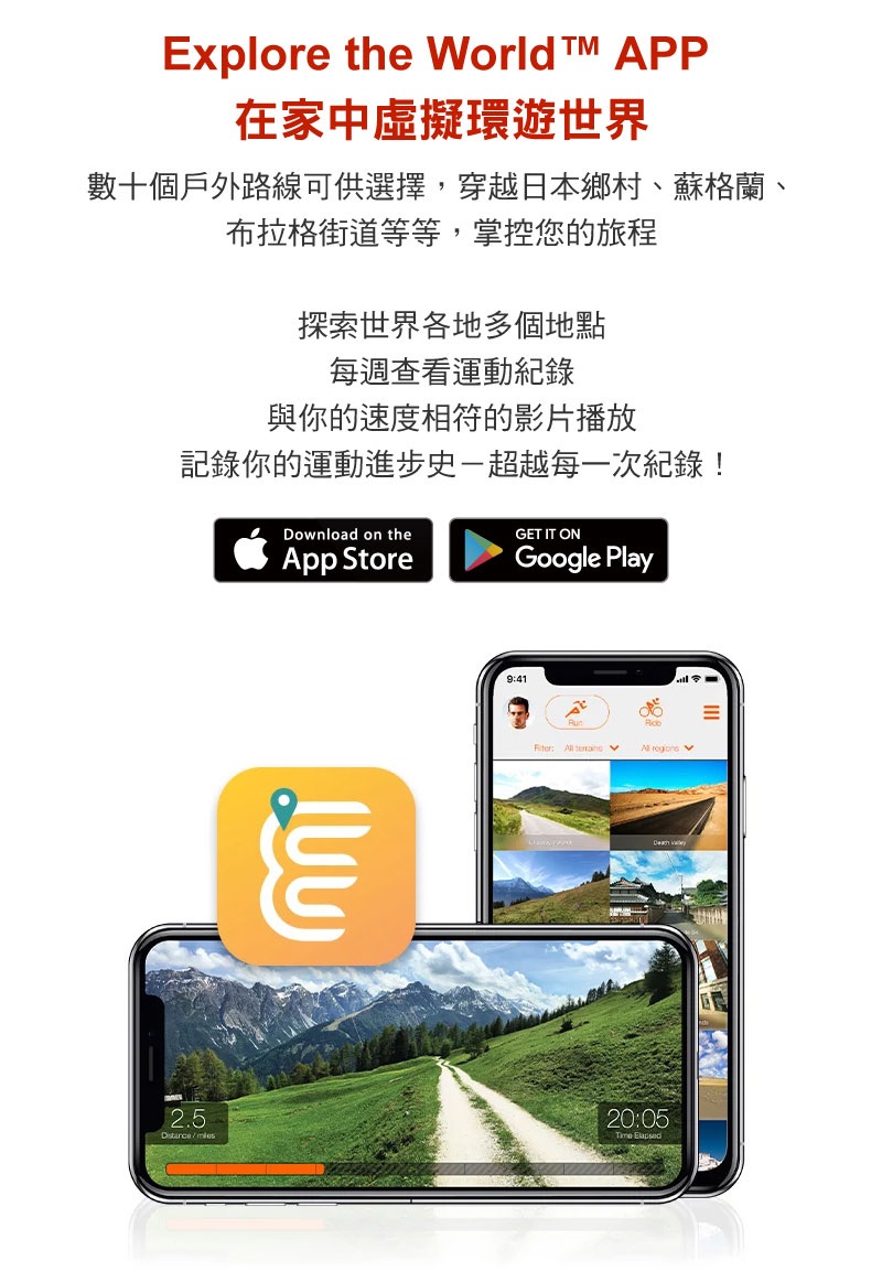 在家挑戰 Explore the World™ APP 通往美好世界,內建13種訓練程式,適合喜歡嘗試多種路線的你