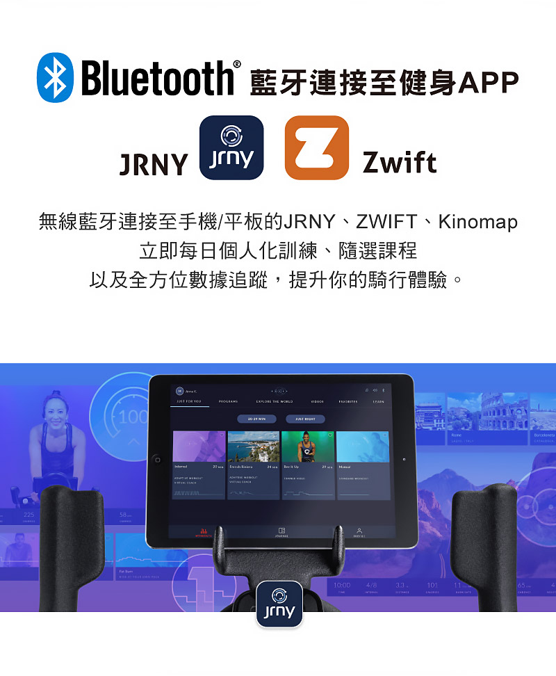 .透過藍牙連結至JRNY™(訂閱制)、Zwift APP